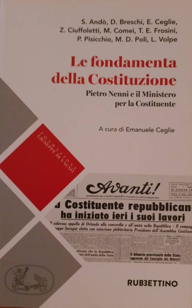 “Il Ministero per la Costituente. L’elaborazione dei principi della Carta Costituzionale”, Fondazione Pietro Nenni, La Nuova Italia, Firenze 1995